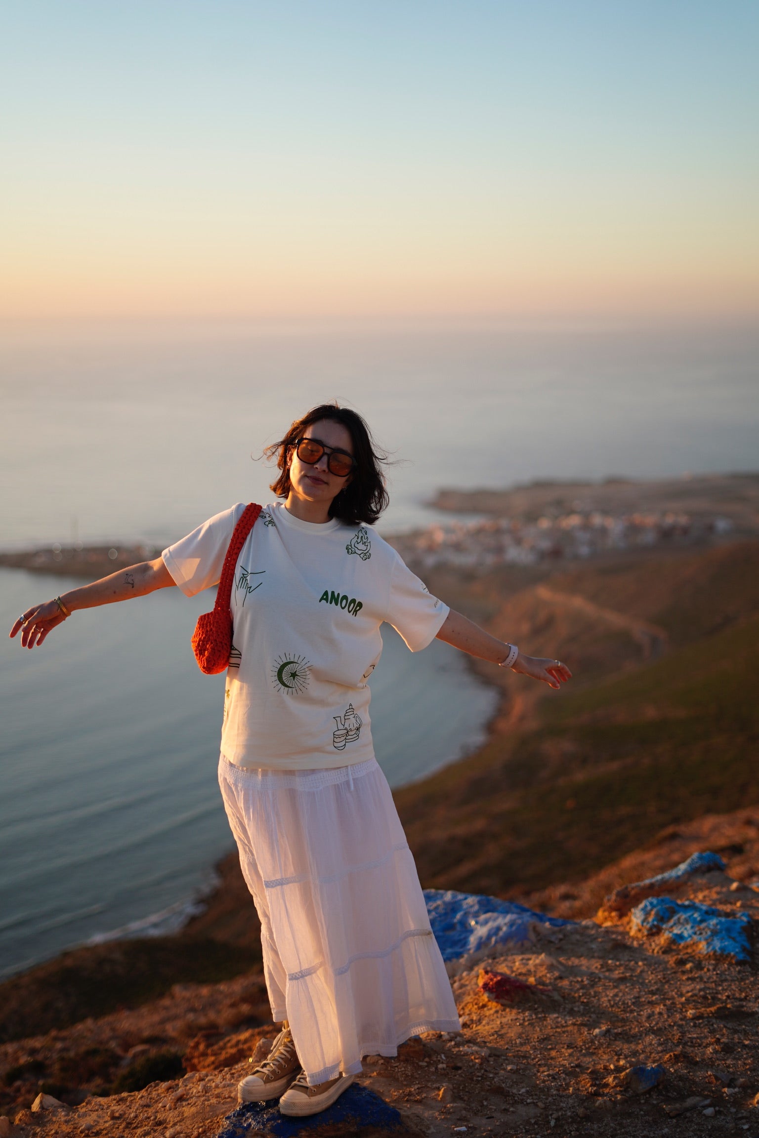Dieses T-Shirt steht für das, was Anoor ausmacht: Gemeinschaft, Ruhe und Verbundenheit – inspiriert von Marokkos Küste, warmem Sand und natürlichen Erdtönen.