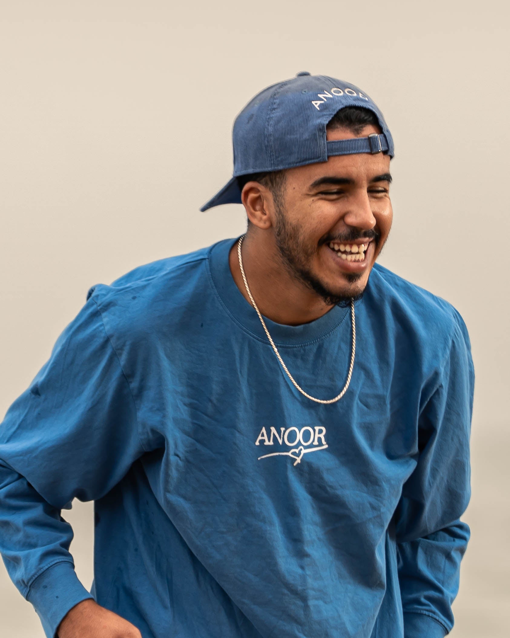 Unsere ANOOR Cord Cap – das Piece, das alles zusammenbringt. Aus weichem Cord gefertigt und erhältlich in Hellblau, bringt sie Surf-, Skate- und Sommer-Vibes in deinen Alltag.